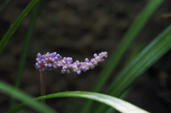 横向きになっているヤブラン(藪蘭、Liriope muscari)の花です。この花が