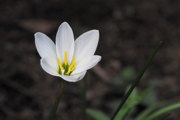 2014年 花や風景や 164 戻る 撮影(08/14) 昨年はこの花をナツズイセンということで頂きましたので、「ナツズイセン (夏水仙、Lycoris squamigera)の仲間?」と記しましたが、私としましては、 ゼフィランサス(Zephyranthes candida)と考えています。別名は「玉簾」です。 しかし花の判別には全く自信がありません。 (OLYMPUS) OM-D E-M1 M.ZDE 60mm F2.8 Macro