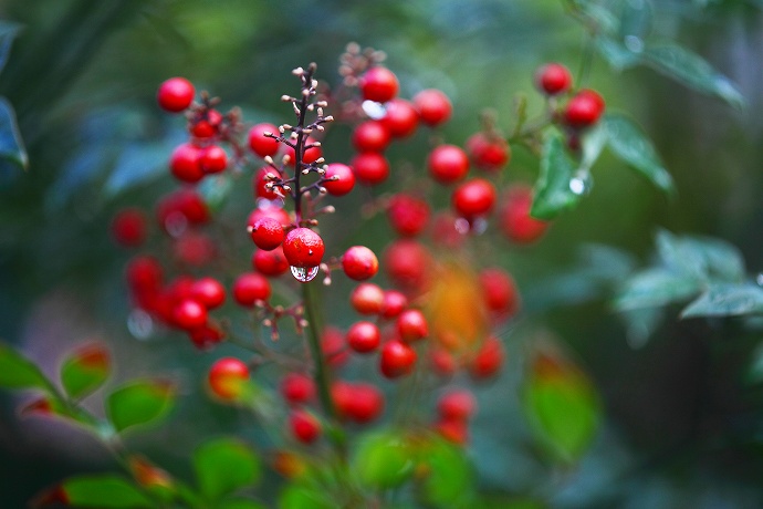 2014年 花や風景や 214 戻る 撮影(11/19) 赤く色づいた庭のナンテン(南天、Nandina domestica)の実です。 (Canon) EOS 5D Mark II (TAMRON) SP AF 180mm F/3.5 Di LD [IF] MACRO 1:1