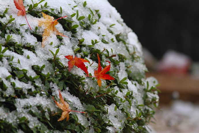 2014年 花や風景や 226 戻る 撮影(12/06) 昨日(06日)、我が家の庭では初雪でした。 雪を被っているのは五月つつじです。真上にはカエデの木が在ります。 (Canon) EOS 7D (Canon) EF300mm F4L IS USM
