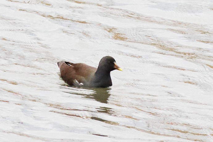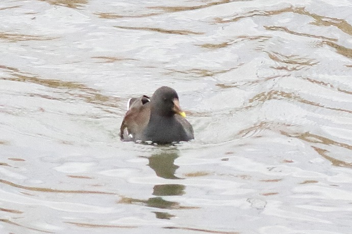 バンの夏羽は嘴基部と額板は赤いですが、この個体は赤くありません。冬羽