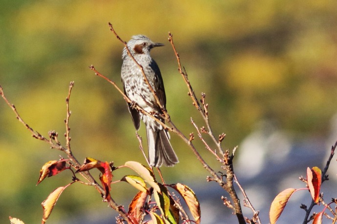 2015年 ヒヨドリ 007 戻る 撮影(11/03) 川土手のソメイヨシノにとまっているヒヨドリです。 今年ほど桜の葉っぱが赤く紅葉したことは無かったように記憶しています。 (Canon) EOS 7D Mark II EF400mm F5.6L USM