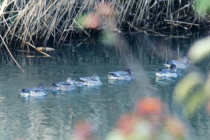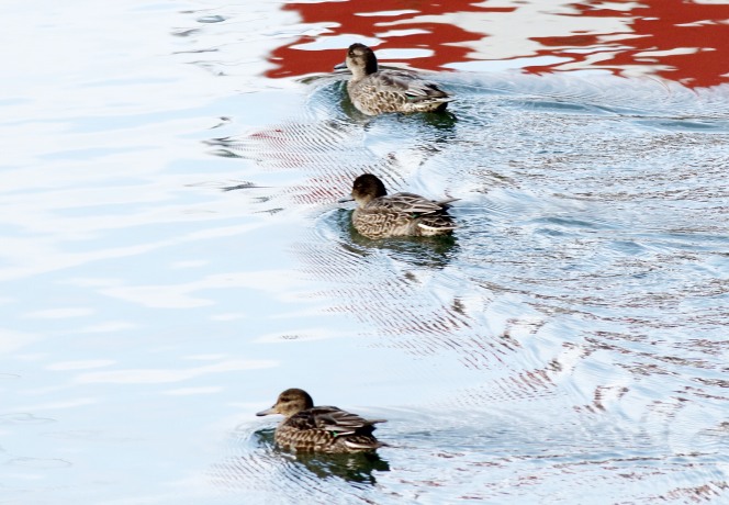 毎年窓外区域に最初に現れる冬鳥は水上ではコガモ、陸上ではジョウビタキ