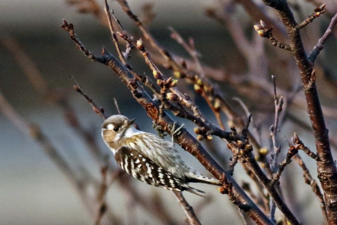 2015年 コゲラ 002 戻る 2羽で来ました。♂なのか♀なのか分かりません。 ソメイヨシノの蕾が膨らんで、開花準備を始めています。(撮影03/18) (Canon)EOS 5D Mark II (Canon) EF400mm F5.6L USM