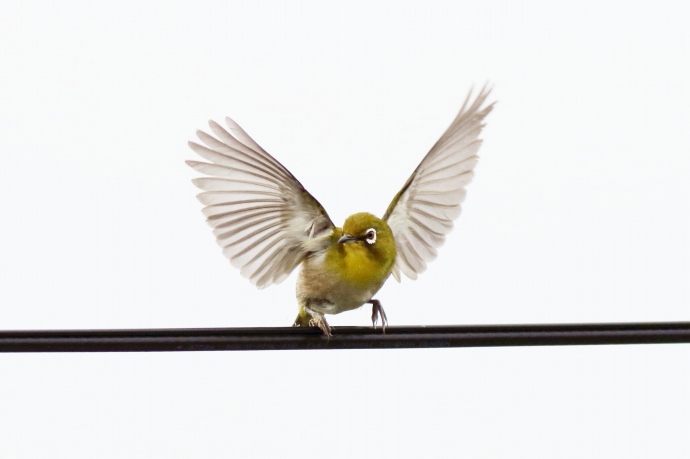 2015年 メジロ 003 戻る いつも動き回っていて撮るのに苦労する鳥ですが、今回は長い間じっとしてい ました。 翼を広げている姿が撮れましたので掲載です。(撮影05/03) (Canon)EOS 5D Mark II EF400mm F5.6L USM