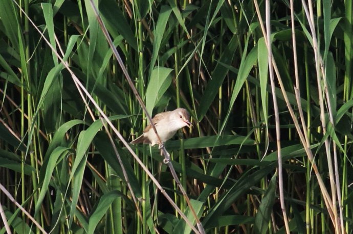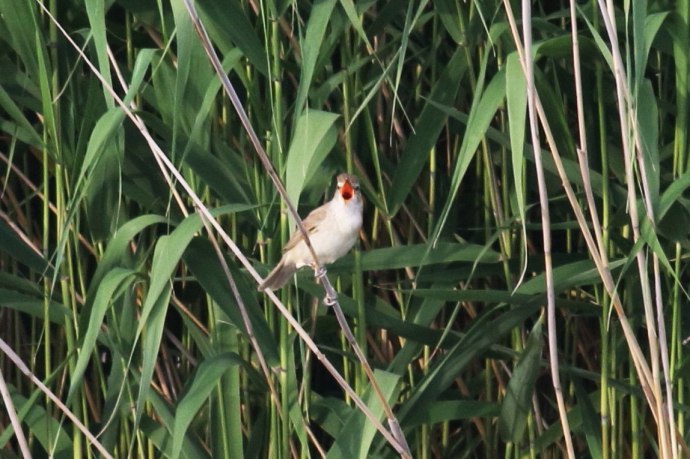 コヨシキリは口の中が黄色いですし、側頭部に黒い線があり、眼の上の白い