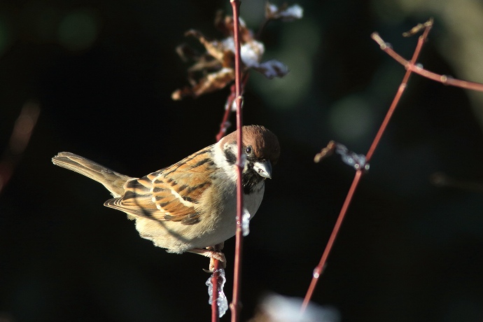 2015年 スズメ 001 戻る 昨年の登場は01月03日でしたが、今年は元旦に雪降る中での登場でし た。(撮影01/01) (Canon) EOS 7D Mark II EF400mm F5.6L USM + EXTENDER EF 1.4x II