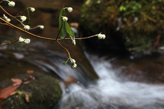 見道近くの河原にミツマタ(三枝、三又、Edgeworthia chrysantha)の花が見られました。