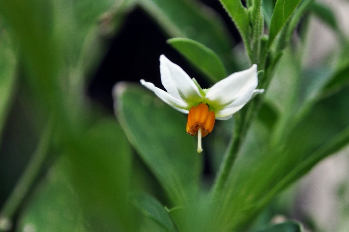 フユサンゴ(冬珊瑚、Solanum pseudocapsicum)の花です。果実はヒヨドリが大