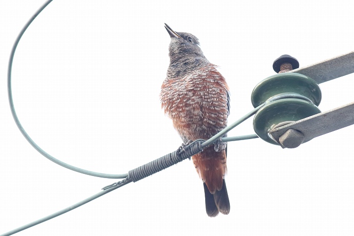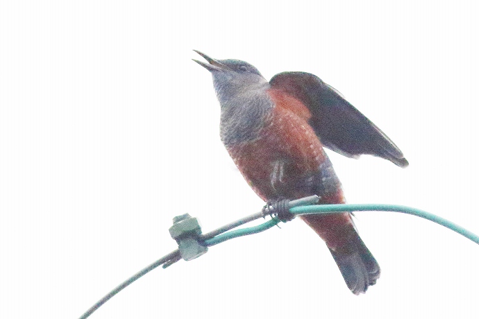 他のイソヒヨドリを威嚇している姿です。次期首長を自覚している行動です。
