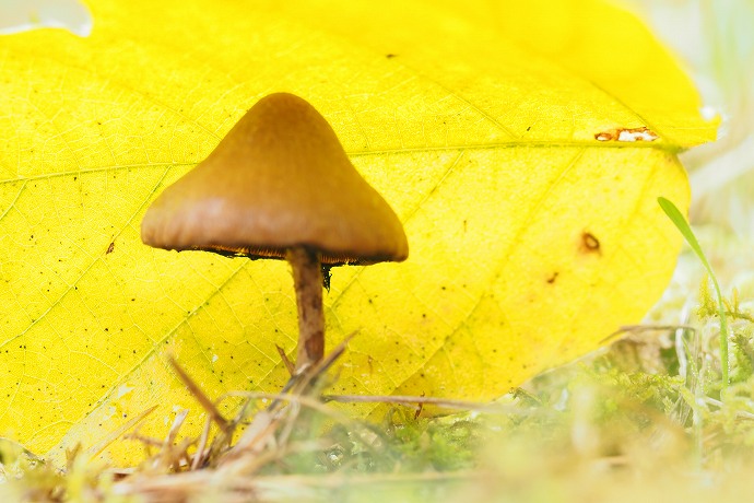 2016年 花や風景や 169 戻る 撮影(11/08) いつもの公園で枯葉の陰に静かに立っているキノコを見つけました。 OLYMPUS PEN-F M.ZUIKO DIGITAL ED 60mm F2.8 Macro.
