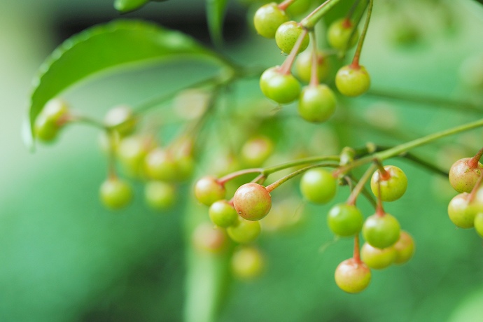 2016年 花や風景や 171 戻る 撮影(11/10) 昨日(10日)センリョウ(千両、Sarcandra glabra)を載せましたので、今日は マンリョウ(万両、Ardisia crenata)です。此の果実は近く赤くなります。 撮影地は同じく庭です。 OLYMPUS PEN-F M.ZUIKO DIGITAL ED 60mm F2.8 Macro.