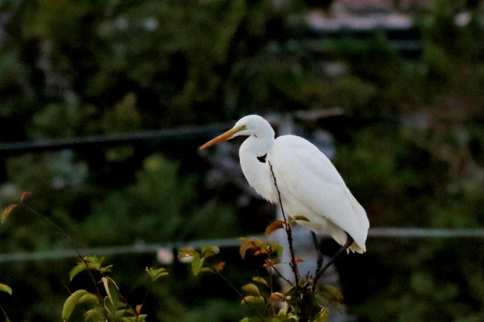 2017年 ダイサギ 003 戻る 撮影(09/27) チュウダイサギだと思います。窓外区域の対岸の電柱にとまりました。今年 は沢山の白鷺が飛来しています。 口角がが明らかに眼の後方を越えています。黒い足です。嘴は黒みがかっ た黄色です。 (Canon) EOS 7D Mark II EF400mm F5.6L USM