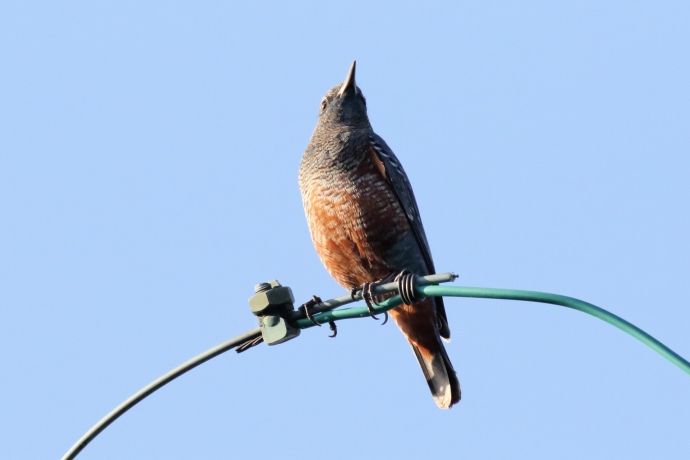 2017年 イソヒヨドリ 013 戻る (撮影09/30) 別家イヒ6世の子供です。♂です。 先月は♀がメスが非常に強い力を持っていて、ひょっとすれば♀蛾が次世代 の長になるかもと感じて、それはそれで期待したのですが、いつの間にか此の ♂が長になり、姉の♀は姿を消しました。 別家イヒ7世候補、です。 なお親鳥の別家イヒ6世と別家イヒヒ6世は一度も現れませんでした。 (Canon) EOS 7D Mark II EF400mm F5.6L USM