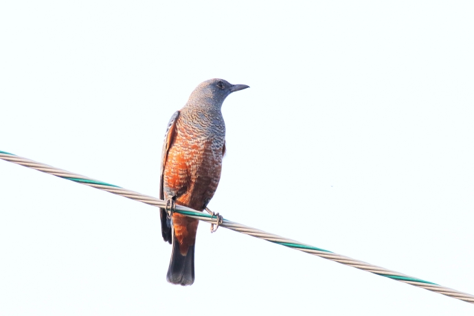 2017年 イソヒヨドリ 014 戻る 撮影(10/11) 別家イヒ7世候補、です。 ♀が現れるのは年末だと予想します。♀が来る前には、此の♂が暫く姿を 消します。数日から数十日後に帰ってきます。そして暫く後に♀が近づいて きます。 両者がお互いに認め合うと、めでたく別家イヒ7世候補誕生、となります。 (Canon) EOS 7D Mark II EF400mm F5.6L USM