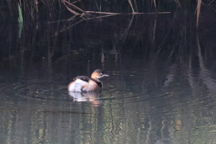 2017年 カイツブリ 001 戻る 撮影(10/25) 昨年の初登場も10月でした。2羽が一緒に飛来しました。 先日台風による強風の後、最近は姿を見なかった数種の鳥が窓外区域に来 ました。風が運んで来たのでしょうか。それとも台風後に穏やかな晴天を利用 して飛来したのでしょうか。 既に冬羽ですから地味な姿です。 (Canon) EOS 7D Mark II EF400mm F5.6L USM