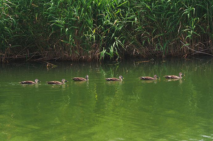 子供が小さな幼鳥の頃は親鳥が先頭を泳ぎますが、若鳥になって勝手に列か