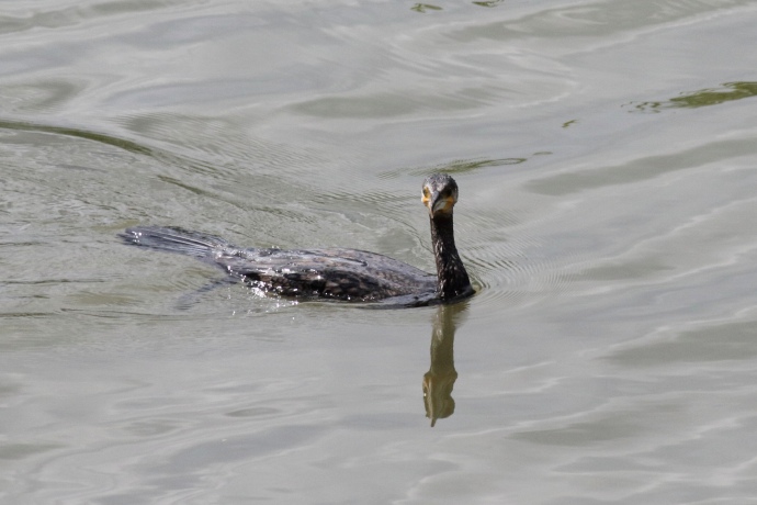 2017年 カワウ 005 戻る 撮影(09/03) 長い間窓外水域に姿を見せませんでしたが、アオサギがほぼ連日窓外水域に 現れるようになったので、カワウも来るようになりました。 両者は魚を捕獲する上で深い関連があります。 (Canon) EOS 7D Mark II EF 400mm F5.6L USM