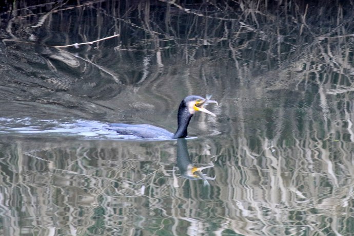 2017年 カワウ 006 戻る 撮影(10/05) 窓外水域に現れるカワウは此の一羽だけです。 相変わらずアオサギがカワウが漁をしている近くに行きます。 (Canon) EOS 7D Mark II EF 400mm F5.6L USM