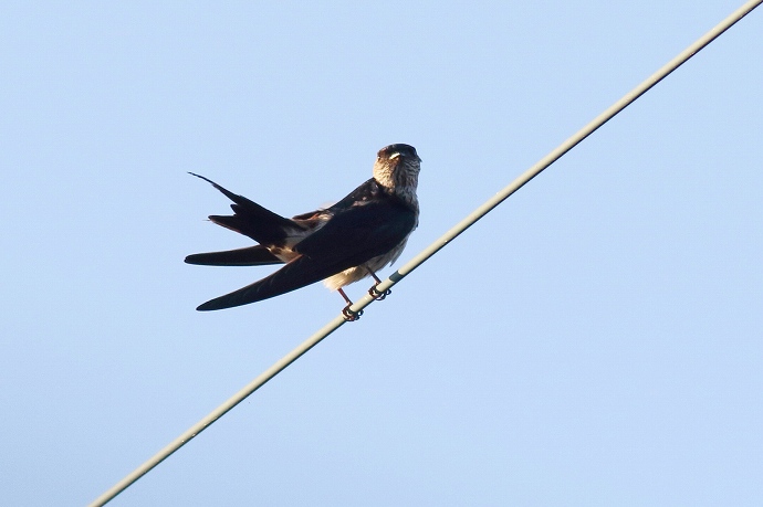 2017年 コシアカツバメ 004 戻る 撮影(08/24) 久しぶりにコシアカツバメが来ました。 窓外区域に姿を見せるコシアカツバメは数少ないのですが、昨年の経験から、 だからと言って我が町全体に棲んでいる数が少ない、と断定出来ないようです。 (Canon) EOS 7D Mark II EF400mm F5.6L USM