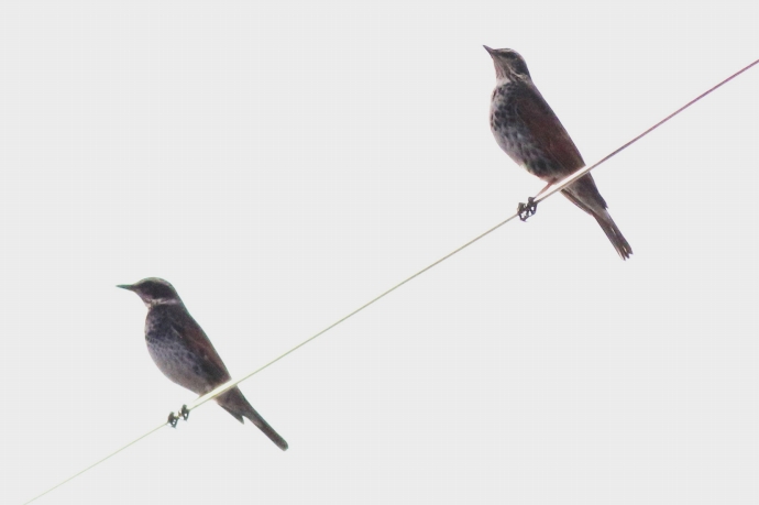 2017年 ツグミ 006 戻る 撮影(11/02) 02日に二羽のツグミが電線にとまりましたが、なにぶん拙い写真ですから、 再び来る姿を待っていたのですが、その後来ませんでした。 渡って来たばかりで電線でちょっと休憩している光景だと思います。 (Canon) EOS 7D Mark II EF400mm F5.6L USM