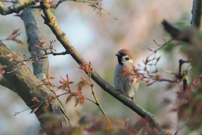 庭のカエデ属 (Acer)にも葉っぱの新芽が出てきました。この赤い芽が出てき