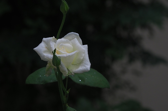 2017年 花や風景や 126 戻る 撮影(07/26) 今朝中庭の白いバラが開花していました。 26日朝早く、未だ暗いうちに咲いたようです。背が高いバラ(薔薇、Rosa)です から、部屋の窓から撮った写真です。 (OLYMPUS)OM-D E-M1 Mark II M.ZUIKO DIGITAL ED 12-100mm F4.0 IS PRO