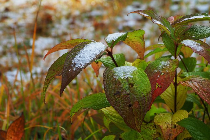 2017年 花や風景や 188 戻る 撮影(12/06) 「鳥取県に雪が降った」の発表は昨日(05日)でした。 アジサイの葉っぱに乗っている雪です。 撮影地は町内の公園です。 (OLYMPUS)OM-D E-M1 Mark II M.ZUIKO DIGITAL ED 12-100mm F4.0 IS PRO
