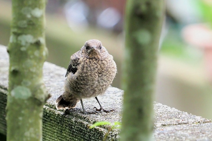 庭の花などを撮影しようと出て行ったらイソヒヨドリの幼鳥が居て逃げません