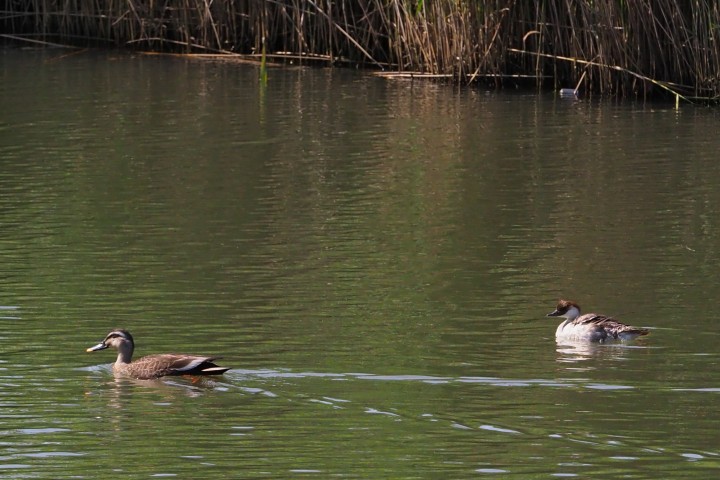 左はカルガモです。
