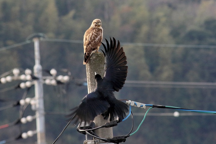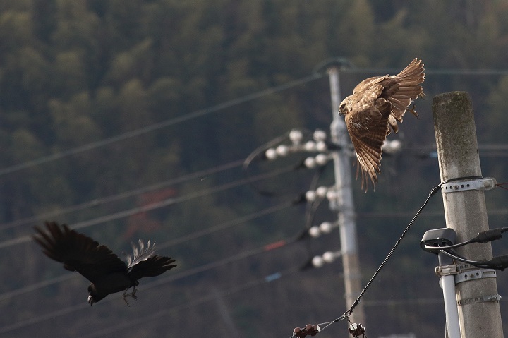 ノスリはカラスを追っかけましたが、ゆっくりでした。