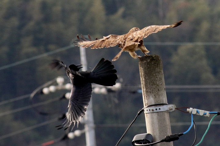 2013年にも此の電柱にとまっていましたが、ハシブトガラスに攻撃され
