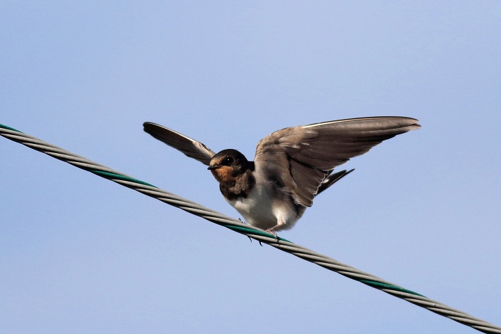 2018年 ツバメ 004 戻る 撮影(08/27) (写真1) 幼鳥です。若鳥と表現してもよいほどの飛翔力が見られますので、そろそろ 遠い国へ移動する準備が始まると思います。 近い日に多数のツバメが電線にずらりと並ぶ光景が見られると予想します。 (写真2) 上と同じツバメです。 (Canon) EOS 7D Mark II EF400mm F5.6L USM