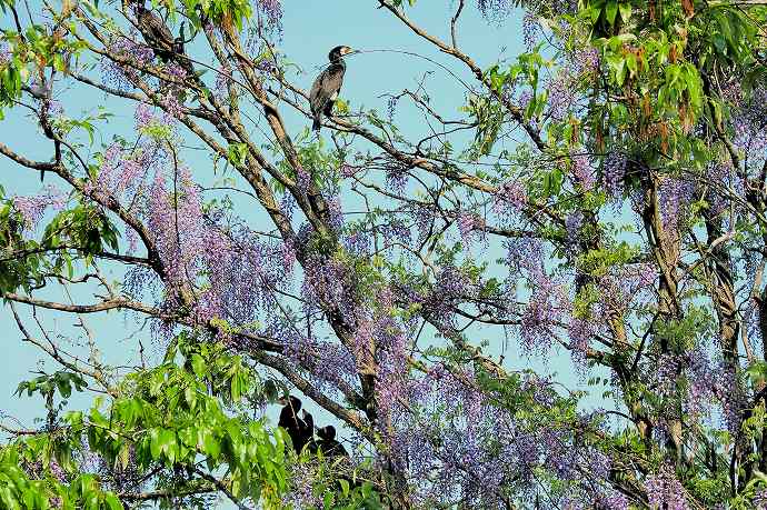 2018年 花や風景や 04-12 戻る 撮影(04/22) 本日は久しぶりに遠出しました。暖かい晴天でした。 昼食は中国道「北房SA」でした。そこの広場で撮った写真です。 藤が綺麗でした。ついでにカワウの親子が居ました。 (OLYMPUS)OM-D E-M1 Mark II M.ZUIKO DIGITAL ED 12-100mm F4.0 IS PRO