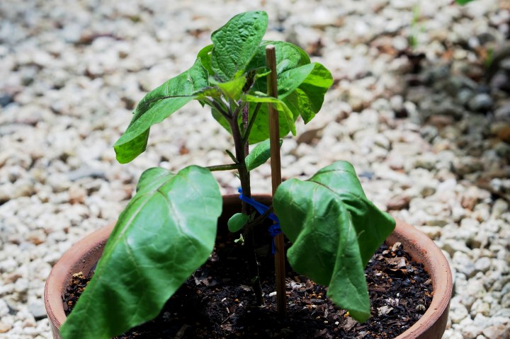 ナス(茄子、Solanum melongena)です。植木鉢で育てています。初体験です。
