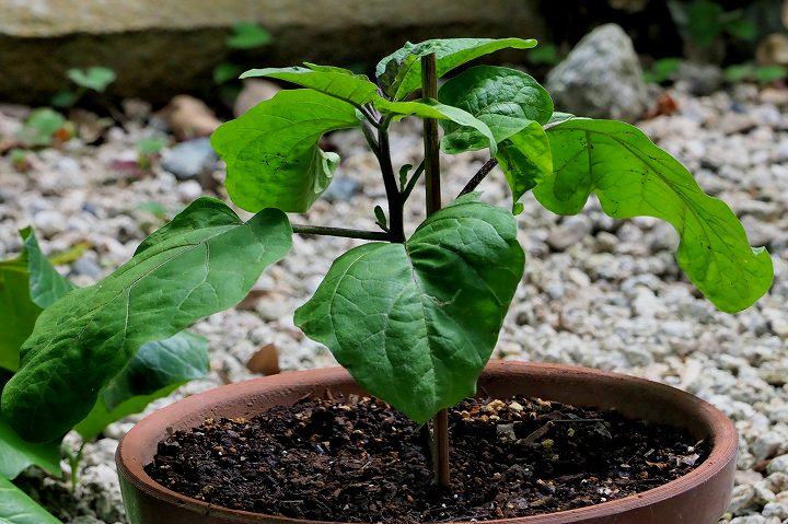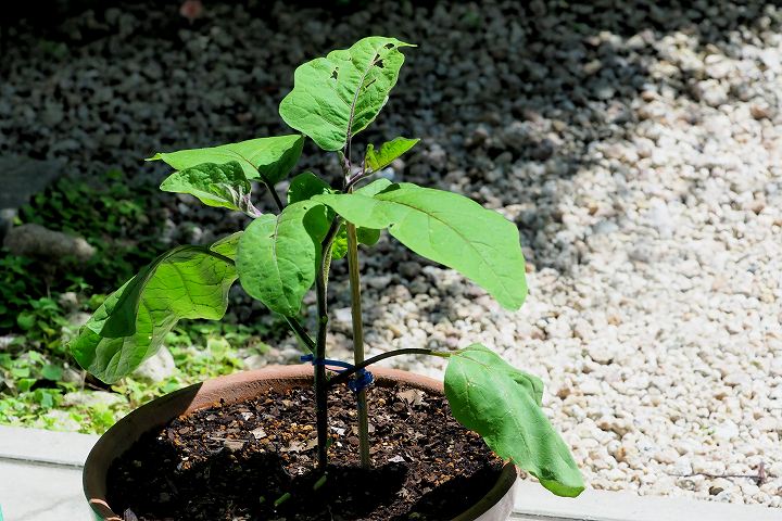 初めてナスのプランター(鉢)栽培に挑戦しています。苗は一本だけです。