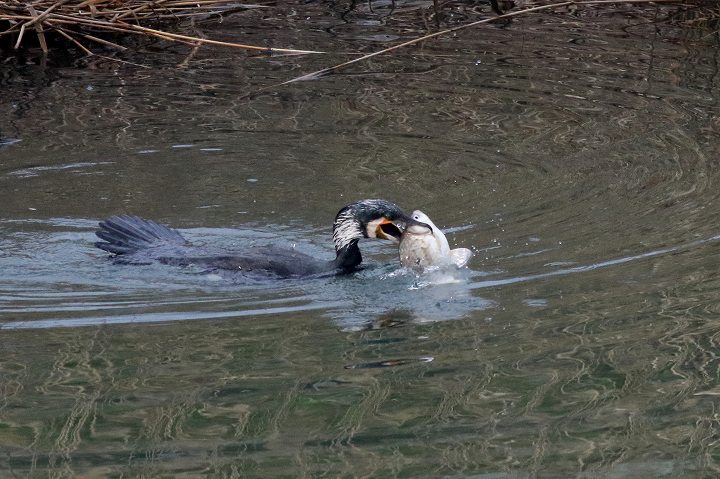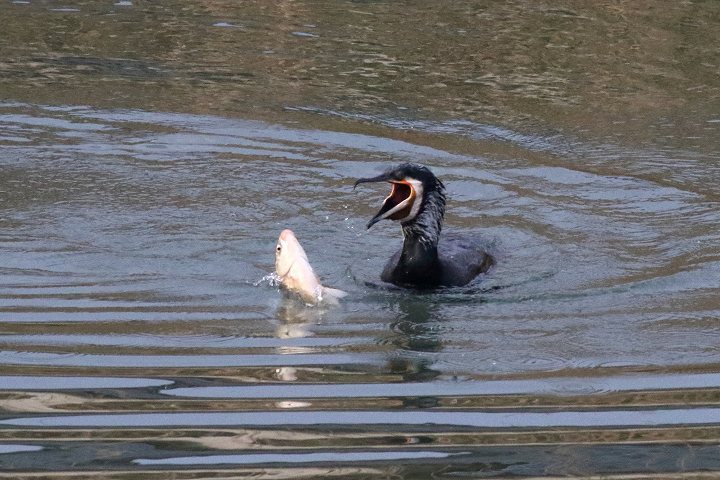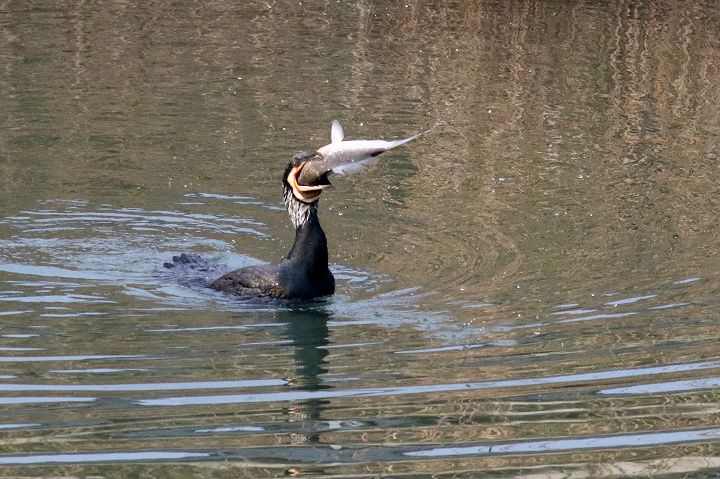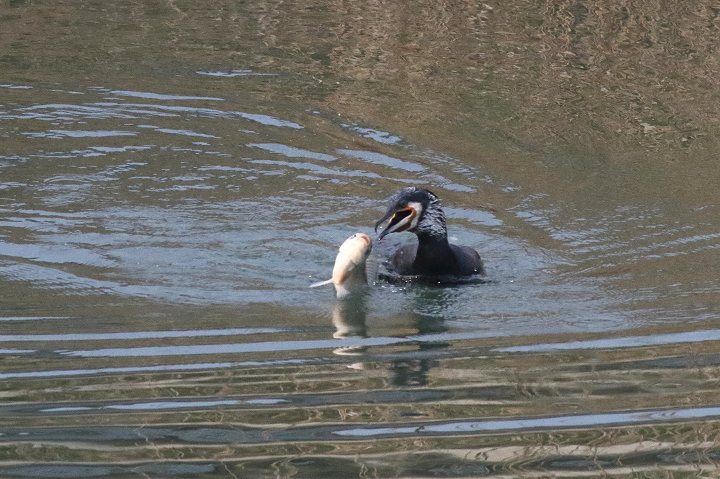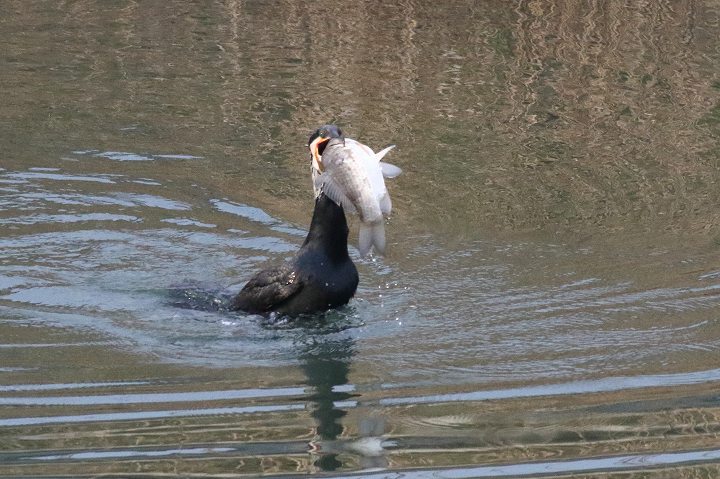 このカワウに此の魚は少し大き過ぎるように感じるのですが・・・。