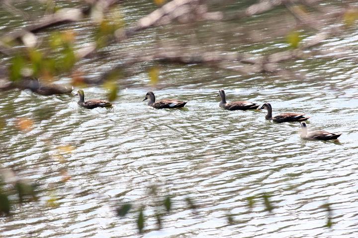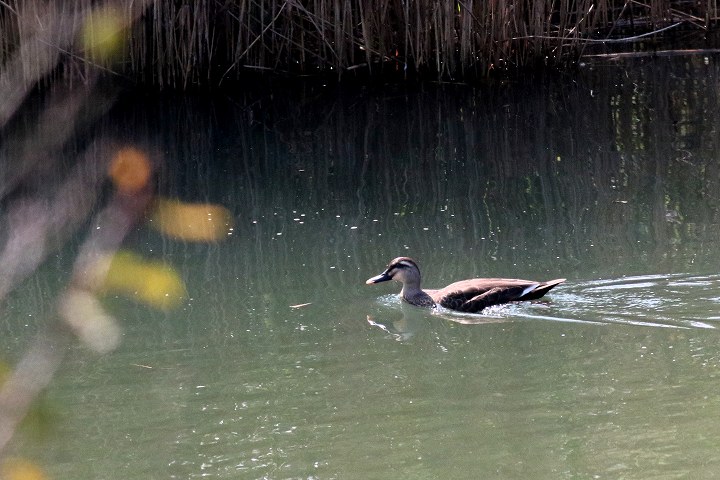 しかし暫く後に上のカルガモ連は帰ってきて、その後仲良く窓外水域の支流で