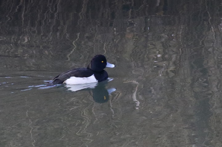 2020年 キンクロハジロ 001 戻る 撮影(01/04) ♂です。 ♂ですから大きな冠羽が背中まで届いています。 単独で来ました。再び一度は複数で来るだろうと予想しますが、同じ個体かど うかを見分けることは出来ないだろうと思います。 (Canon) EOS 7D Mark II EF400mm F5.6L USM