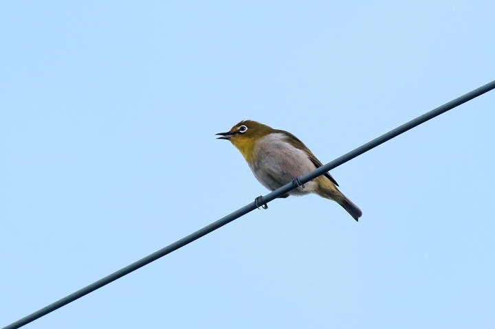 2020年 メジロ 004 戻る 撮影(06/22) メジロは電線にとまることは少ないように感じていたのですが、このメジロは 電線の上で大声を張り上げて鳴いていました。 (Canon) EOS 7D Mark II EF400mm F5.6L USM