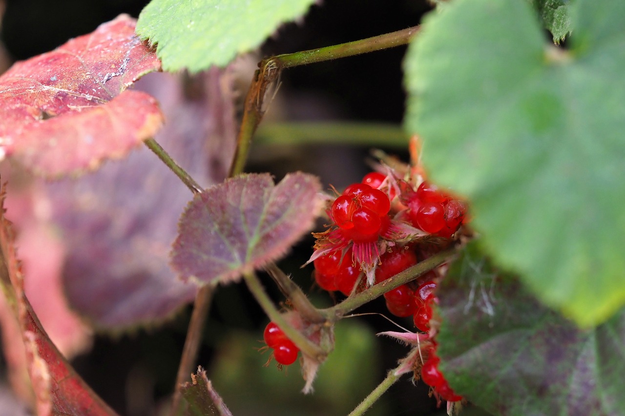 2020年 花や風景や 08 戻る 撮影(01/19) 倒木の中でのんびりしている野イチゴです。 撮影地は町内の公園です。 (OLYMPUS) OM-D E-M1 Mark II M.ZUIKO DIGITAL ED 40-150mm F2.8 PRO
