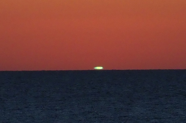 2020年 花や風景や 03 戻る 撮影(06/07) 今日は大気が澄んでいましたので、夕方の町内夏泊海岸の夕景色を楽しみ に行ってみました。 この時期は夕日は水平線に沈みます。 沈む直前に太陽の一部が緑色になりました。時にこういう現象が観られます が、どうい条件下で発生するのかは私には分かりません。 (Olympus) OM-D E-M1 Mark II M.ZUIKO DIGITAL ED 12-100mm F4.0 IS PRO