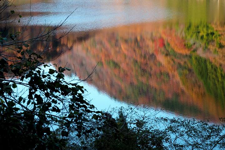 岡山県新見市北部です。ダム湖に写った紅葉です。