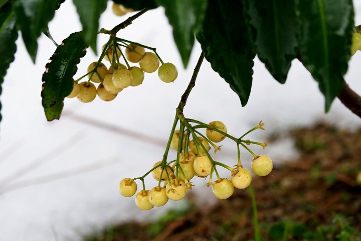 どのマンリョウも赤くなっていますが、まだこんな色の実がありました。