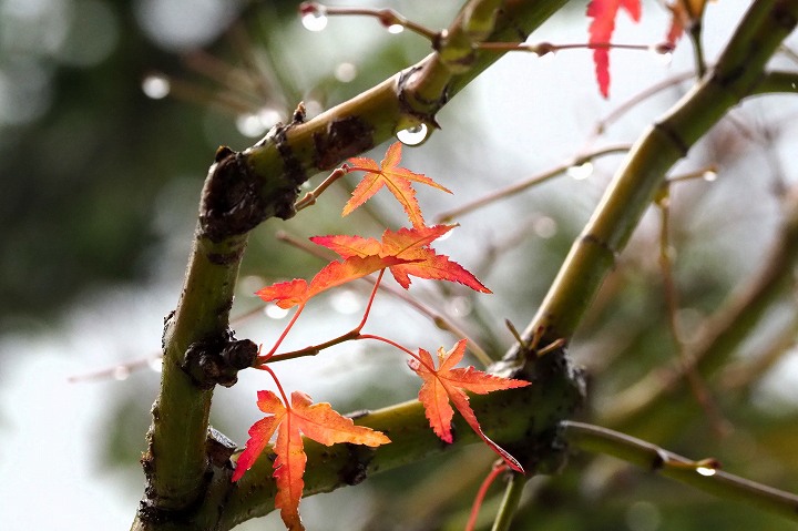 今年は台風の影響が無かったですから、庭のカエデの葉っぱが紅葉のままで
