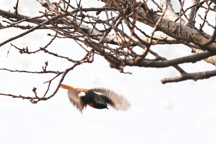 飛んでいます。頭が白いですから♂です。