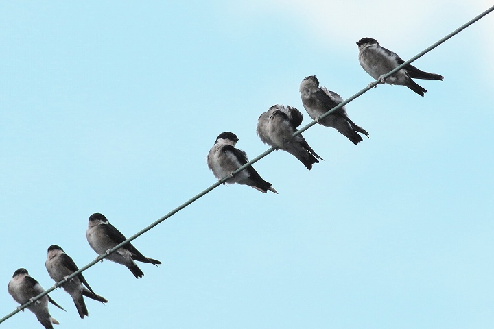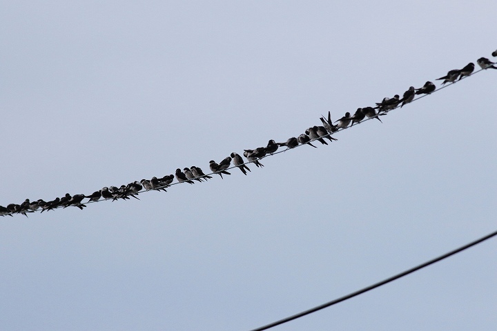 200羽前後のツバメ様の鳥が電線にずらりと並びました。