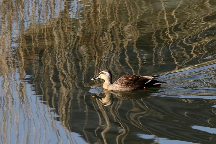 2021年 カルガモ 004 戻る 撮影(04/03) 掲載(04/05) (写真1) ほぼ連日10数羽が窓外水域に来ます。 (写真2) この日は陸上で何かを食べていました。 白く散らばっているのはソメイヨシノの花弁です。 (Canon) EOS 7D Mark II EF400mm F5.6L USM