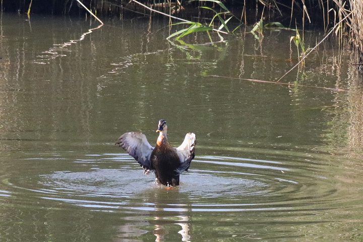 をかけると、集団の全員が怒って、1羽のカルガモを数羽で制裁することがあり