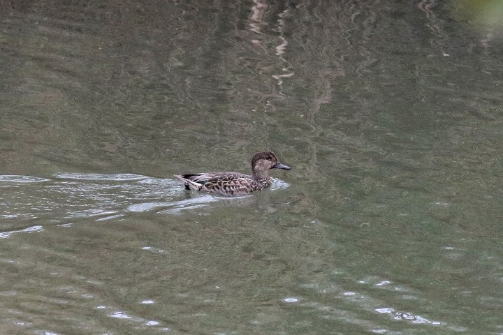 冬鳥が渡って来るには好条件だと感じ、窓外水域を見たら、予想通りにコガモ